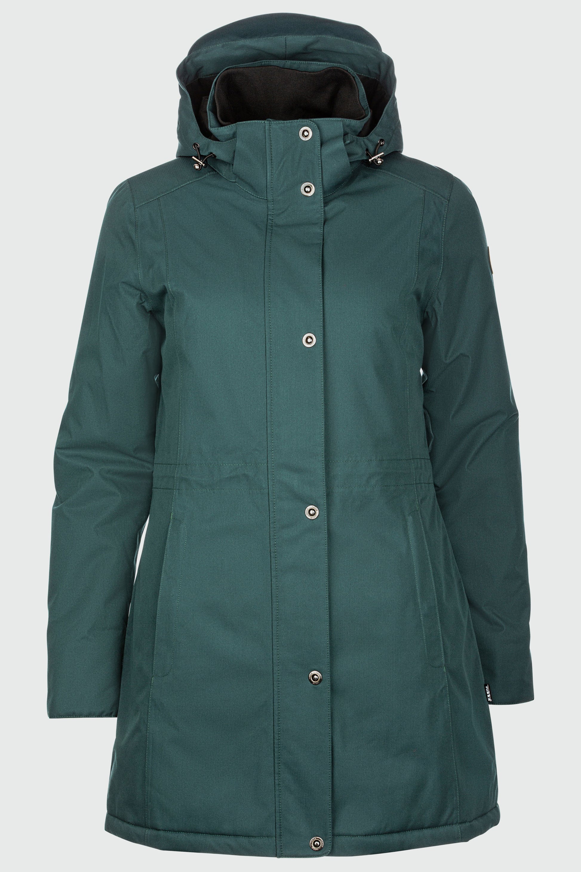 Rosie von Rukka. Der neue Wintermantel im schönen Fischgrätenmuster mit abtrennbarer Kapuze und zwei Aussentaschen ist 100% wetterfest, atmungsaktiv und somit der perfekte Begleiter für die nasskalten Wintertage.